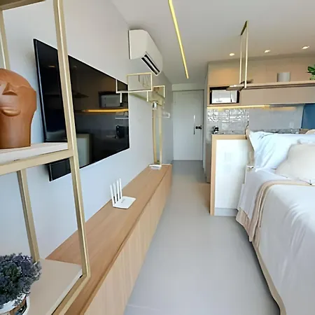 This accommodation has a kitchen with a fridge and kitchenware. Flat Aconchegante Com Piscina Ampla Apartment is a 43 minutes’ drive from Guararapes airport.